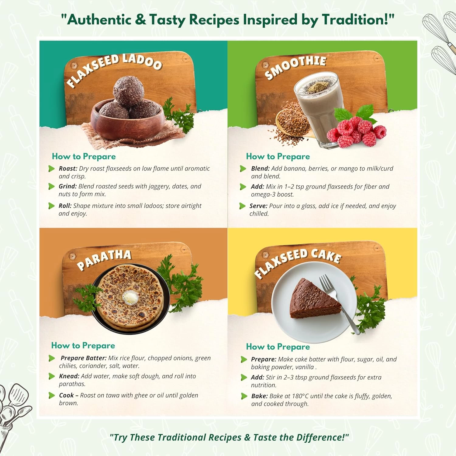 Flax seed is one of the most praised and worshipped superfoods for all its numerous health benefits that sum up to a healthy lifestyle. These tiny seeds are pretty much mighty! They are a rich source of essential nutrients that are not fulfilled in our modern diets. Thus, they are an easy ingredient to add to your diet in your daily life! Accezory offers you premium quality flax seeds that are hygienically packed, fresh, delicious, and crunchy. It has a high nutritional value such as it is a rich source of Omega 3 fatty acids, high fibre content, potent antioxidants, gluten-free, and various mineral content such as iron, zinc, folate, magnesium, manganese, etc.